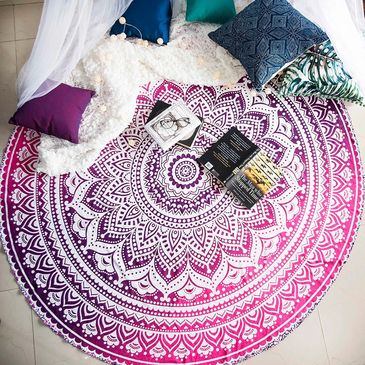 The 72" diameter cotton machine washable Mandala Round Tapestry can be used as a rug, yoga mat, beach blanket, wall hanging, or even a tablecloth.