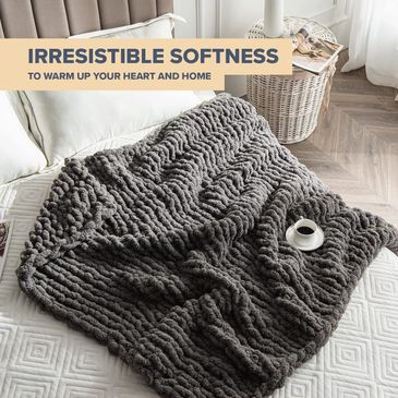 Made to look like wool, this Chunky Knit Blanket is large enough for a bed or sofa but looks great hung over chairs as well. You'll never want to take it off!